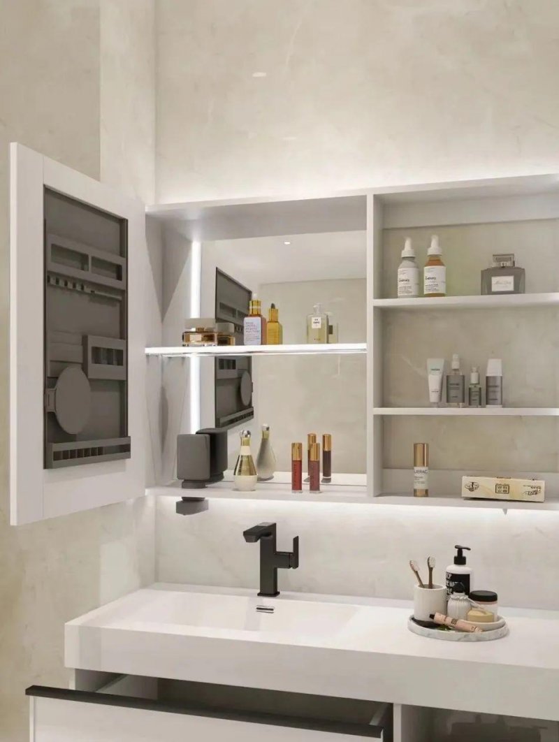 Many people didn't think too much when choosing the mirror cabinet, until they used it, they found that either the bottle couldn't fit in or the capacity was not enough. Therefore, it is most reasonable to customize according to the volume of the article. For example, for bottles and cans, the height of the floor should be designed to meet the maximum height of the bottle, and the width and depth of the cabinet should be determined according to the volume and capacity of the bottle. Generally speaking, the height of the mirror cabinet is between 600-800mm and the depth is between 120-150 mm.