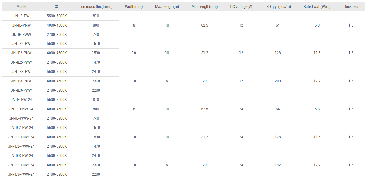 -Standard 5M on reel for lE-PX and IE2-PX, 3M on reel for JN-IE3-PX;